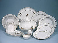 Тарелка глубокая 220 мм (6 шт.); Тарелка мелкая 240 мм (6 шт.); Тарелка мелкая 200 мм (6 шт.); Тарелка мелкая 175 мм(6 шт.); Ваза для супа 3л ; Блюдо для пиццы 300 мм(1 шт.); Селедочница 250 мм; Салатник 360 см3(6 шт.);Перечница, горчичница